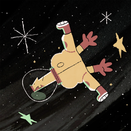 Set in what appears to be the outer reaches of space, a happy astronaut bobs in and out of view, awestruck by the stars and planets around him. Until the camera pans back and we realise that all is not as it seems...!