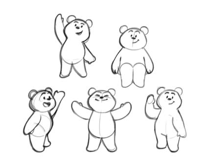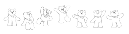 Once we were sure we’d got him just right, we gave him a clean silhouette, open, approachable poses and a lovely glint in his eye. To add the finishing touch, we used gradients to add volume and all-important squeezability. Pudsey’s expressive character and poses suit various media, from logos to social avatars. We wanted to bring him to life through animation in a new and exciting way—but one that made sure he was still the Pudsey we know and love.